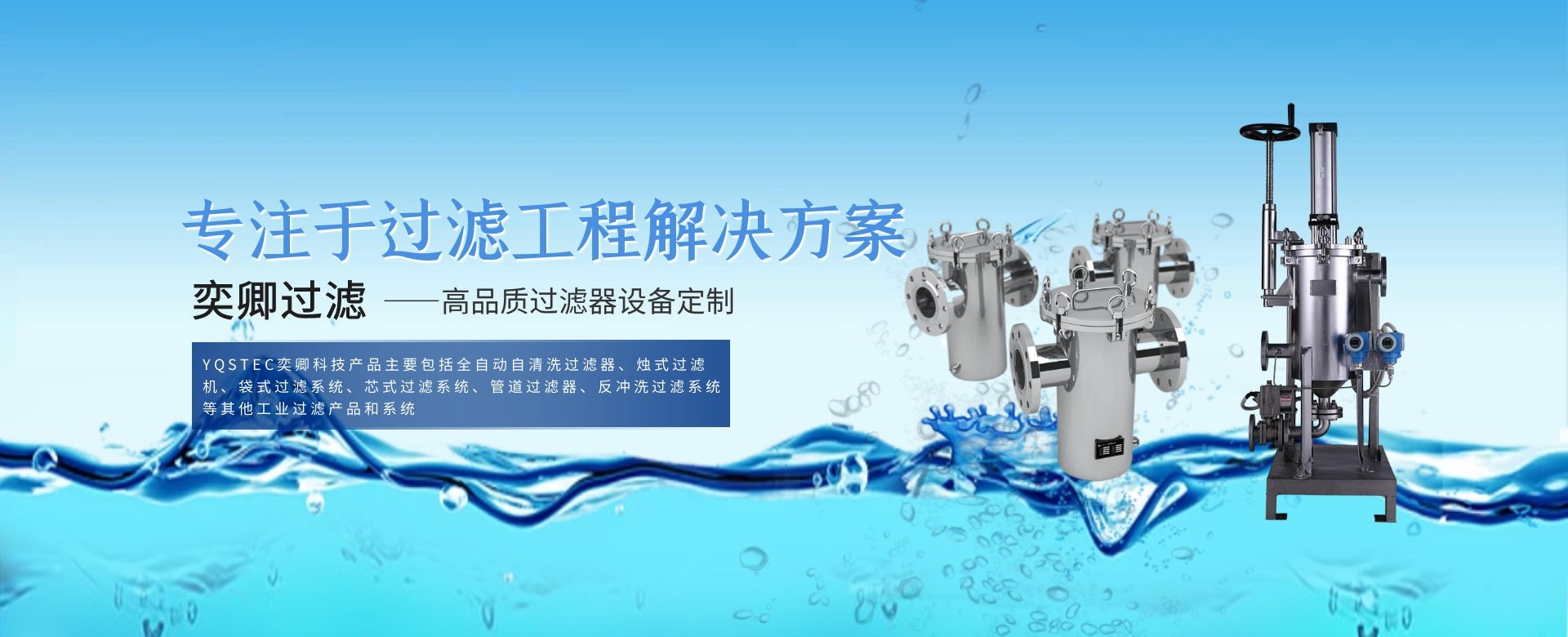 上海奕卿過(guò)濾科技有限公司是一家集設(shè)計(jì)、制造、銷(xiāo)售過(guò)濾設(shè)備和提供過(guò)濾系統(tǒng)自動(dòng)化工程及解決方案于一體的綜合性公司,并創(chuàng)立“YQSTEC”過(guò)濾品牌。